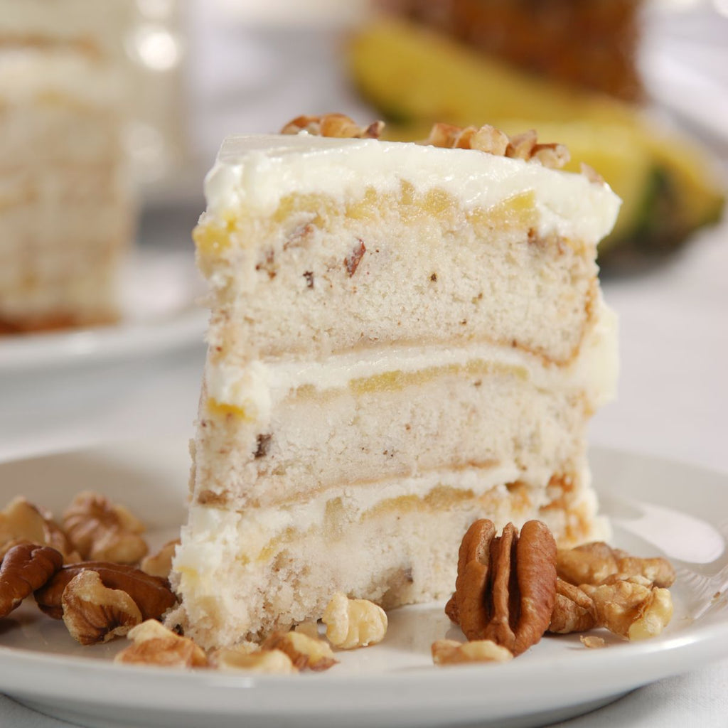 Sugar, cream cheese, pineapple, eggs, butter, buttermilk, enriched wheat flour, sweetened coconut (coconut, sugar, water, propylene glycol, salt, sodium metabisulfite), coconut milk, pecans, walnuts, baking soda, baking powder (corn starch, sodium bicarbonate, sodium aluminum sulfate, monocalcium phosphate), vanilla extract, salt.