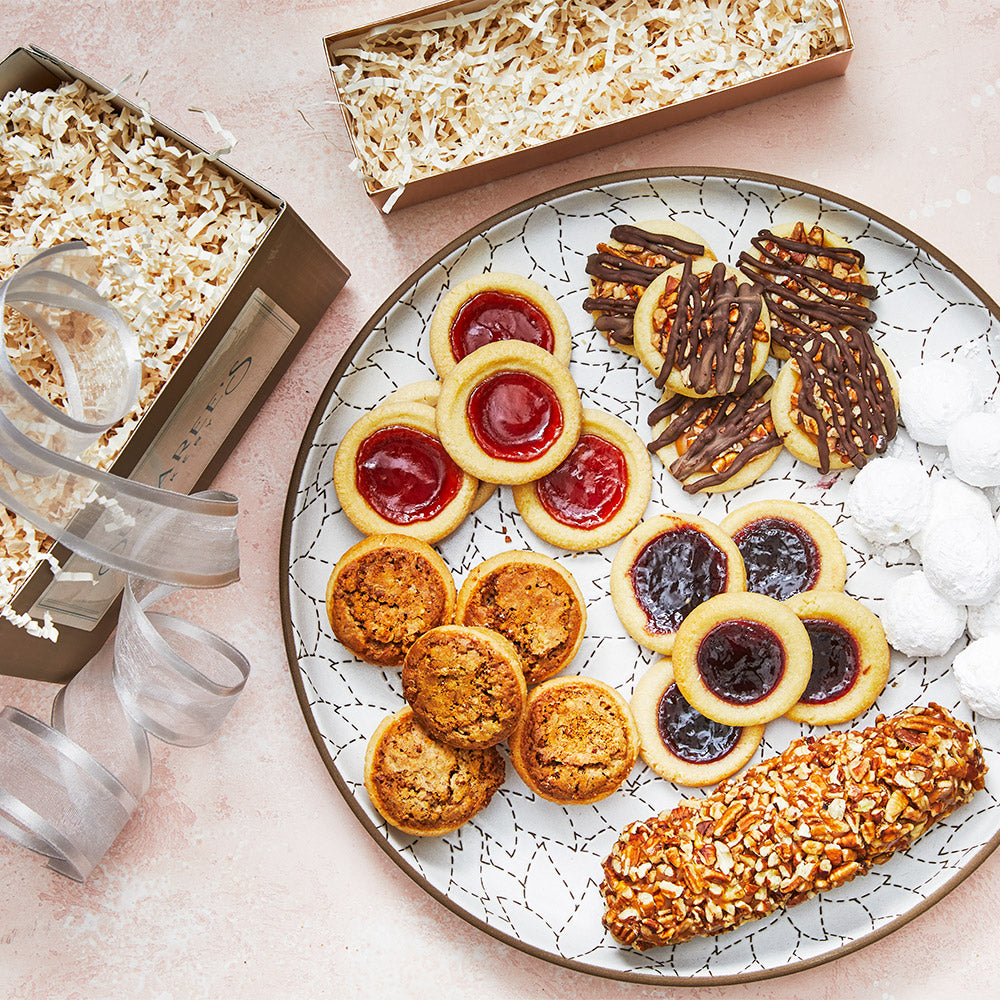 Pecan Tassies: Sugar, butter, enriched wheat flour, pecans, eggs, vanilla extract, cornstarch, salt. CONTAINS: Wheat, Milk, Eggs, Tree Nuts