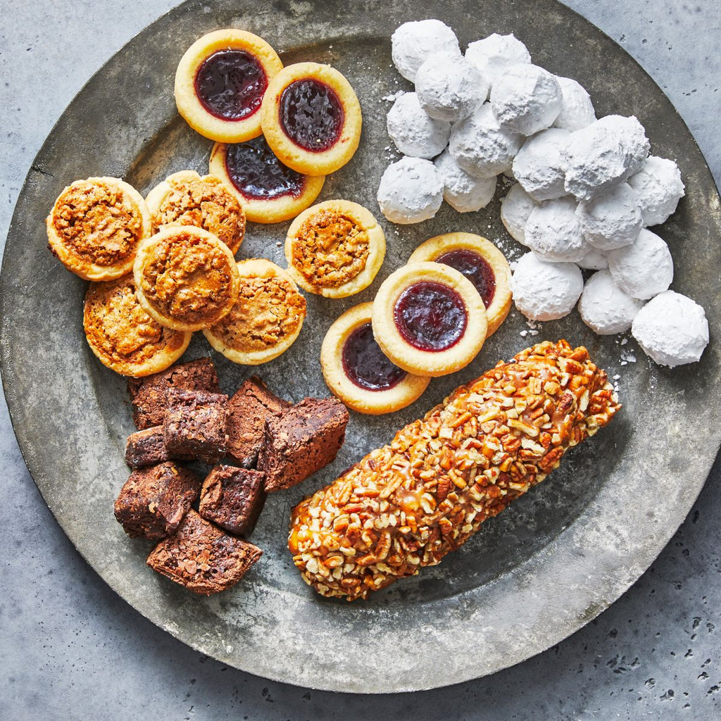 Party trays are available in a variety of standard sizes and assortments, including our small cookies, brownies, pecan tassies, tarts, and pecan logs.