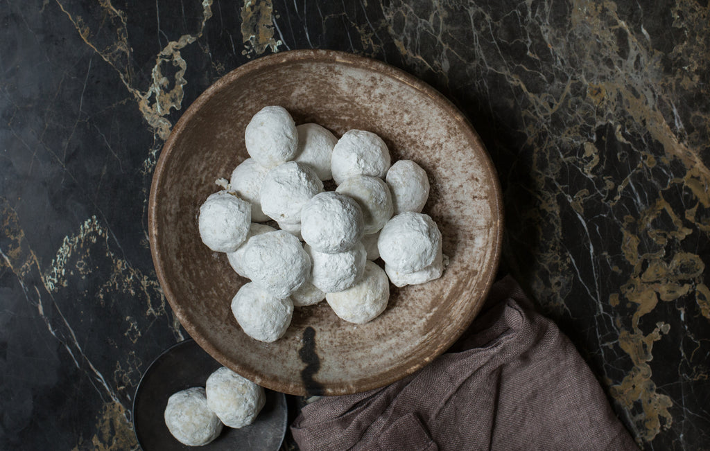 Two dozen buttery, sugar-dusted wedding cookies perfectly packaged in a Sugaree’s gift box
